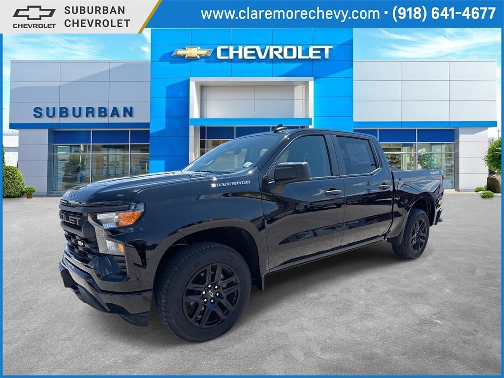Save more in Claremore, Call for additional info at 918-343-3636. Black 2025 Chevrolet Silverado 1500 Custom 4WD 2.7L I4 Turbocharged DOHC 16V LEV3-SULEV30 310hp Price includes: $1000 - Bonus Cash. Exp. 11/03/2025 $3000 - Customer Cash. Exp. 11/03/2025